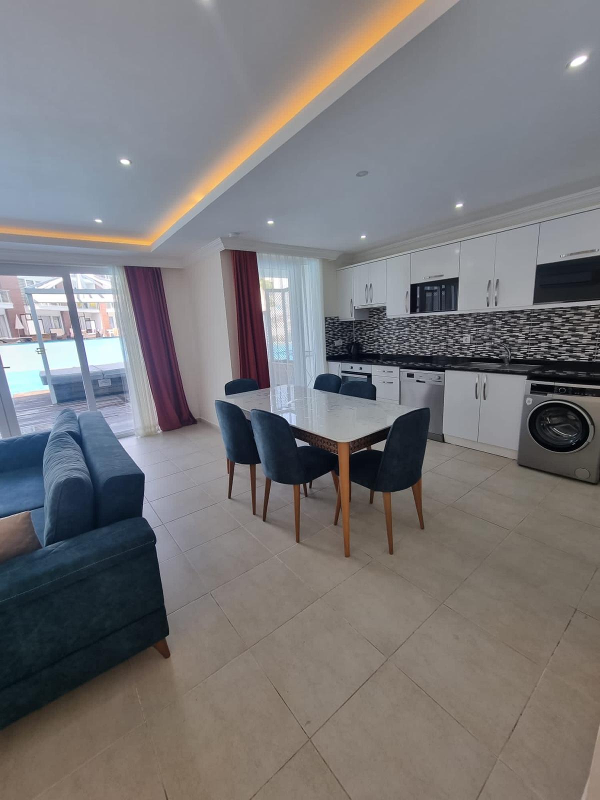 Discover refined coastal living in this beautifully designed 2-bedroom duplex apartment, located on one of Ovacik’s most sought-after developments. This stylish swim-up property offers direct pool access from a spacious private terrace and boasts high-end finishes throughout, making it ideal as a luxury holiday home or a lucrative investment opportunity.