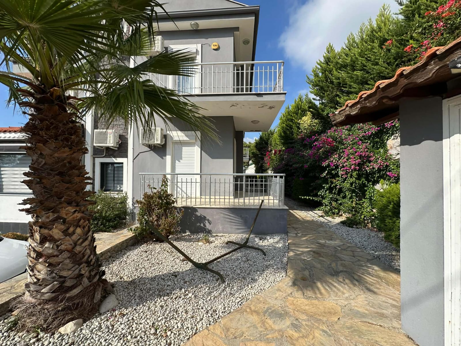 The villa has been thoughtfully designed with modern family living in mind and offers a generous 4+1 layout. Three spacious bedrooms benefit from private en-suite bathrooms, providing comfort and privacy for family members or guests, while the fourth bedroom is served by a stylish shared family bathroom. An additional WC on the top floor adds further convenience. The property is sold fully furnished to a high standard, with carefully selected modern furnishings, allowing for immediate use or rental with no additional setup required.