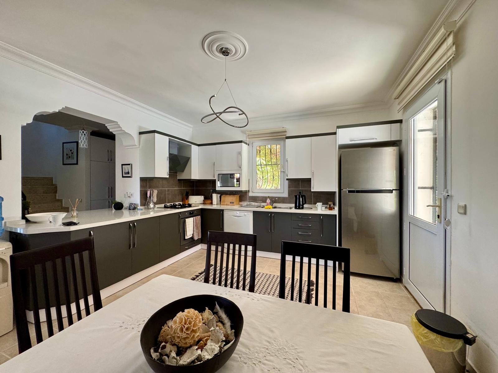 The villa features a bright and spacious open-plan living layout, including a large lounge and dining area, perfect for relaxing or entertaining guests. The kitchen has been recently renovated, offering a modern finish and a practical workspace suited to everyday living. There is also a convenient downstairs WC.